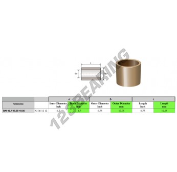 Il Boccole In Bronzo conosciuto con il riferimento BAI12.7-19.05-19.05 Generico ha un diametro interno di 12.7 mm, un diametro esterno di 19.05 mm e una lunghezza di 19.05 mm. È prodotto in .
