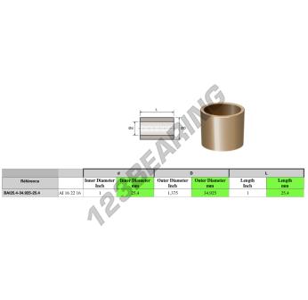 Il Boccole In Bronzo conosciuto con il riferimento BAI25.400-34.925-25.400 Generico ha un diametro interno di 25.4 mm, un diametro esterno di 34.925 mm e una lunghezza di 25.4 mm. È prodotto in .