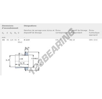 Il Bussole, noto come H219-SKF SKF, ha un diametro interno di 85 mm, un diametro esterno di 125 mm e uno spessore di 55 mm.