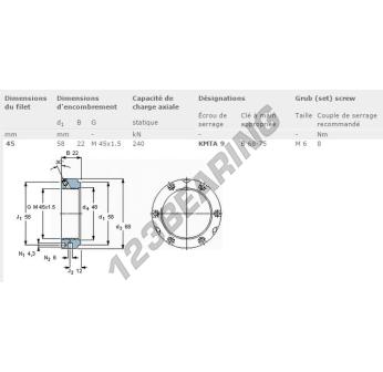 Questo dado ha un diametro interno di 45mm, un diametro esterno di 58mm e uno spessore di 22mm.