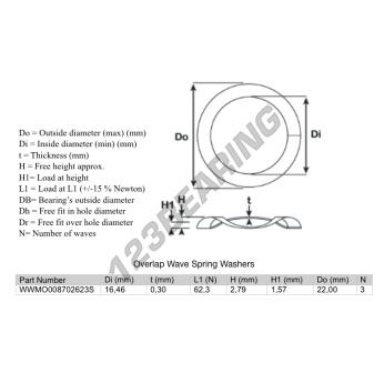 Il Rondelle Per Molle Ondulate Sovraposte con riferimento WWMO008702623S ha un diametro interno di 16.46 mm e uno spessore di 0.3 mm. È realizzato in materiale ACCIAIO INOSSIDABILE.