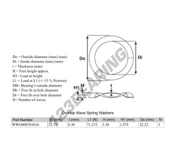 Il Rondelle Per Molle Ondulate Sovraposte con riferimento WWO008701016 ha un diametro interno di 15.75 mm e uno spessore di 0.3 mm. È realizzato in materiale ACCIAIO.