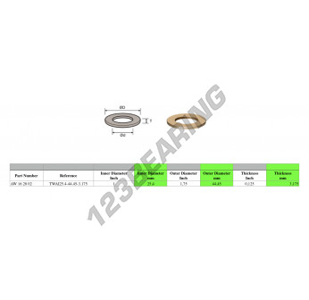 Il Ralle Reggispinta noto come TWAI25.4-44.45-3.175 Generico misura 25.4 mm in diametro interno, 44.45 mm in diametro esterno e 3.175 mm in spessore.