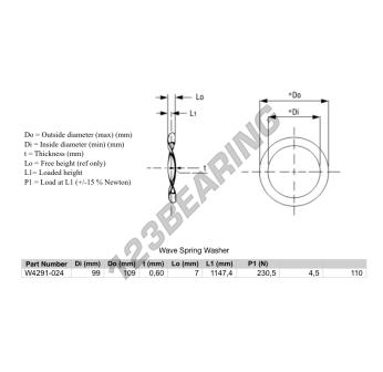 Il Rondelle Ondulate - Anelli Di Compensazione con riferimento W4291024 ha un diametro interno di 99 mm, un diametro esterno di 109 mm e uno spessore di 0.6 mm. È realizzato in materiale ACCIAIO.