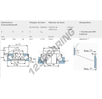 Il Cuscinetti Assiali A Rulli, noto come 29322-E-SKF SKF, ha un diametro interno di 110 mm, un diametro esterno di 190 mm e uno spessore di 48 mm.