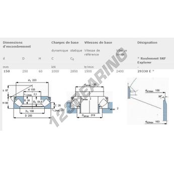 Il Cuscinetti Assiali A Rulli, noto come 29330-E-SKF SKF, ha un diametro interno di 150 mm, un diametro esterno di 250 mm e uno spessore di 60 mm.