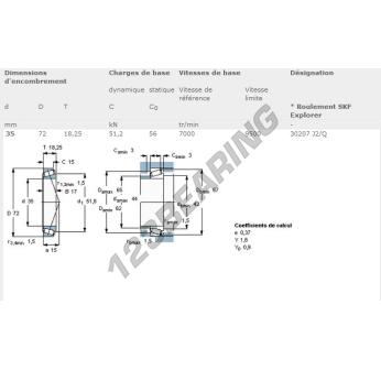 Il Cuscinetto Conico, noto come 30207-SKF SKF, ha un diametro interno di 35 mm, un diametro esterno di 72 mm e uno spessore di 18.25 mm.