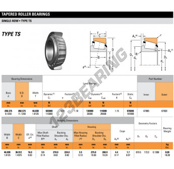 Il Cuscinetto Conico, noto come 67985-67920-TIMKEN TIMKEN, ha un diametro interno di 206.375 mm, un diametro esterno di 282.575 mm e uno spessore di 46.038 mm.