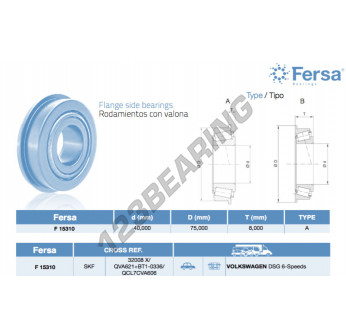 Il Cuscinetto Conico, noto come F15310-ASFERSA ASFERSA, ha un diametro interno di 40 mm, un diametro esterno di 75 mm e uno spessore di 8 mm.