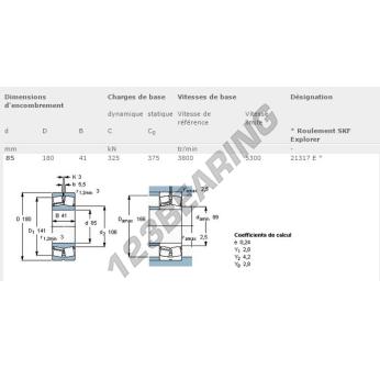 Il Cuscinetti Orientabili A Rulli, noto come 21317-E-SKF SKF, ha un diametro interno di 85 mm, un diametro esterno di 180 mm e uno spessore di 41 mm.