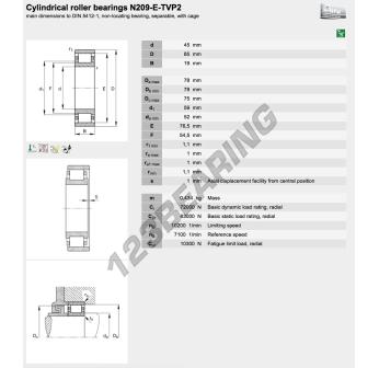 Il Cuscinetto A Rulli, noto come N209-E-XL-TVP2-C3-FAG FAG, ha un diametro interno di 45 mm, un diametro esterno di 85 mm e uno spessore di 19 mm.