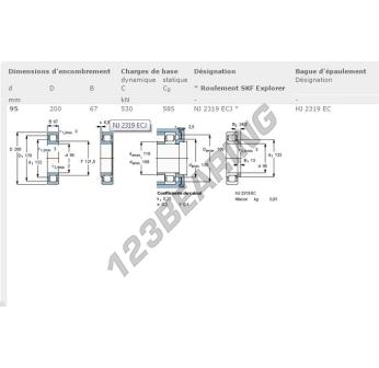 Il Cuscinetto A Rulli, noto come NJ2319-ECJ-SKF SKF, ha un diametro interno di 95 mm, un diametro esterno di 200 mm e uno spessore di 67 mm.