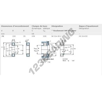 Il Cuscinetto A Rulli, noto come NJ314-ECJ-SKF SKF, ha un diametro interno di 70 mm, un diametro esterno di 150 mm e uno spessore di 35 mm.