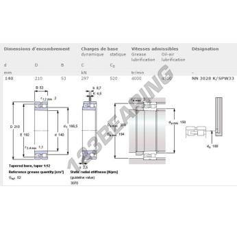 Il Cuscinetto A Rulli, noto come NN3028K-SPW33-SKF SKF, ha un diametro interno di 140 mm, un diametro esterno di 210 mm e uno spessore di 53 mm.
