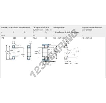 Il Cuscinetto A Rulli, noto come NU1014-ECP-SKF SKF, ha un diametro interno di 70 mm, un diametro esterno di 110 mm e uno spessore di 20 mm.