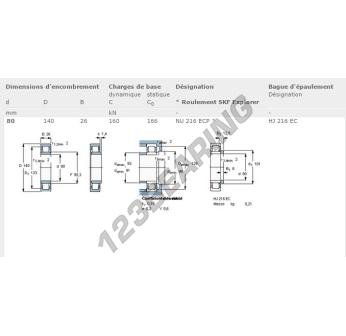 Il Cuscinetto A Rulli, noto come NU216-ECP-SKF SKF, ha un diametro interno di 80 mm, un diametro esterno di 140 mm e uno spessore di 26 mm.