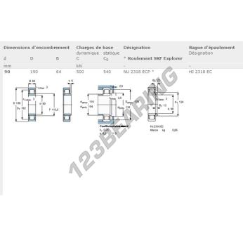 Il Cuscinetto A Rulli, noto come NU2318-ECP-SKF SKF, ha un diametro interno di 90 mm, un diametro esterno di 190 mm e uno spessore di 64 mm.