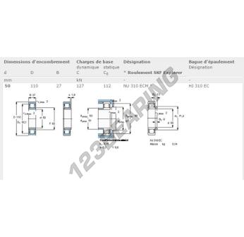 Il Cuscinetto A Rulli, noto come NU310-ECM-SKF SKF, ha un diametro interno di 50 mm, un diametro esterno di 110 mm e uno spessore di 27 mm.
