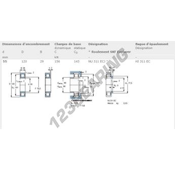 Il Cuscinetto A Rulli, noto come NU311-ECJ-SKF SKF, ha un diametro interno di 55 mm, un diametro esterno di 120 mm e uno spessore di 29 mm.