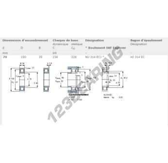 Il Cuscinetto A Rulli, noto come NU314-ECJ-SKF SKF, ha un diametro interno di 70 mm, un diametro esterno di 150 mm e uno spessore di 35 mm.