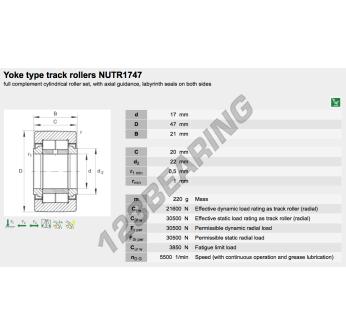 Il Rullo Di Scorrimento, noto come NUTR1747-A-INA INA, ha un diametro interno di 17 mm, un diametro esterno di 47 mm e uno spessore di 21 mm.