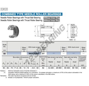 Il Gruppi Rullini E Gabbia, noto come NKX50Z-IKO IKO, ha un diametro interno di 50 mm, un diametro esterno di 62 mm e uno spessore di 35 mm.