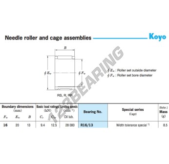 Il Gruppi Rullini E Gabbia, noto come R16-13-JTEKT JTEKT, ha un diametro interno di 16 mm, un diametro esterno di 20 mm e uno spessore di 13 mm.