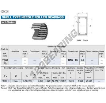 Il Gusci A Rullini, noto come BAM56-IKO IKO, ha un diametro interno di 7.94 mm, un diametro esterno di 12.7 mm e uno spessore di 9.52 mm.