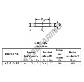 Il Cuscinetti A Rullini, noto come K.81110LPB-JTEKT JTEKT, ha un diametro interno di 50 mm, un diametro esterno di 70 mm e uno spessore di 6 mm.