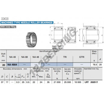 Il Cuscinetti A Rullini, noto come NA4904-IKO IKO, ha un diametro interno di 20 mm, un diametro esterno di 37 mm e uno spessore di 17 mm.