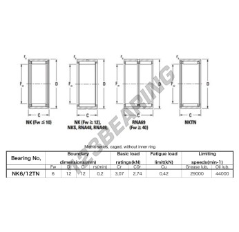 Il Cuscinetti A Rullini, noto come NK612-TN-JTEKT JTEKT, ha un diametro interno di 6 mm, un diametro esterno di 12 mm e uno spessore di 12 mm.