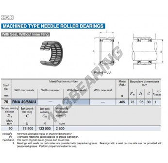 Il Cuscinetti A Rullini, noto come RNA49-68-UU-IKO IKO, ha un diametro interno di 75 mm, un diametro esterno di 95 mm e uno spessore di 30 mm.