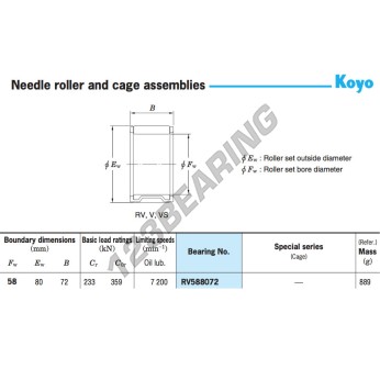 Il Cuscinetti A Rullini, noto come RV588072-JTEKT JTEKT, ha un diametro interno di 58 mm, un diametro esterno di 80 mm e uno spessore di 72 mm.