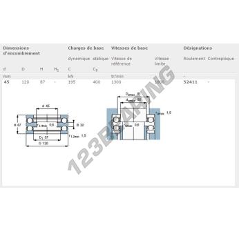 Il Cuscinetti Assiali A Sfere, noto come 52411-SKF SKF, ha un diametro interno di 45 mm, un diametro esterno di 120 mm e uno spessore di 87 mm.