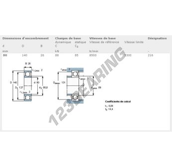 Il Cuscinetti A Sfera, noto come 216-SKF SKF, ha un diametro interno di 80 mm, un diametro esterno di 140 mm e uno spessore di 26 mm.