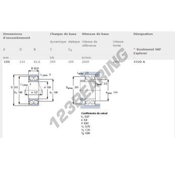Il Cuscinetti A Sfera, noto come 3320-A-SKF SKF, ha un diametro interno di 100 mm, un diametro esterno di 215 mm e uno spessore di 82.6 mm.