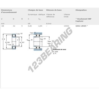 Il Cuscinetti A Sfera, noto come 6002-2RSH-SKF SKF, ha un diametro interno di 15 mm, un diametro esterno di 32 mm e uno spessore di 9 mm.
