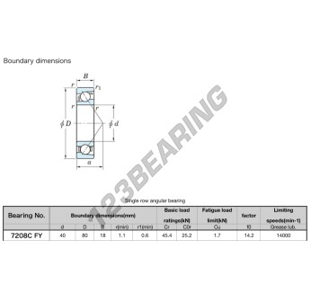 Il Cuscinetti A Sfera, noto come 7208-C-FY-JTEKT JTEKT, ha un diametro interno di 40 mm, un diametro esterno di 80 mm e uno spessore di 18 mm.