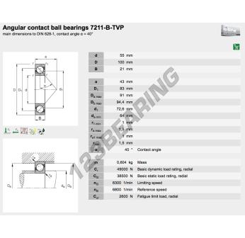 Il Cuscinetti A Sfera, noto come 7211-B-XL-TVP-FAG FAG, ha un diametro interno di 55 mm, un diametro esterno di 100 mm e uno spessore di 21 mm.