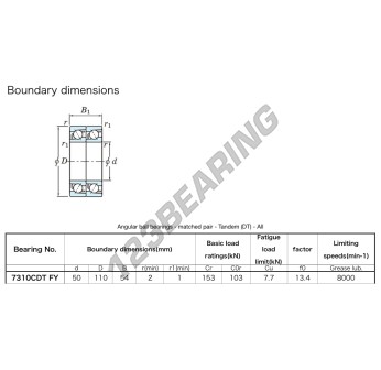 Il Cuscinetti A Sfera, noto come 7310-CDT-FY-JTEKT JTEKT, ha un diametro interno di 50 mm, un diametro esterno di 110 mm e uno spessore di 54 mm.