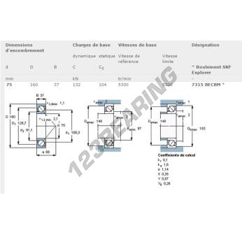 Il Cuscinetti A Sfera, noto come 7315-BECBM-SKF SKF, ha un diametro interno di 75 mm, un diametro esterno di 160 mm e uno spessore di 37 mm.