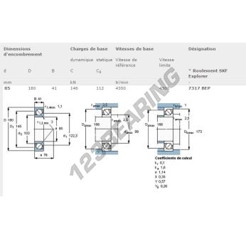 Il Cuscinetti A Sfera, noto come 7317-BEP-SKF SKF, ha un diametro interno di 85 mm, un diametro esterno di 180 mm e uno spessore di 41 mm.