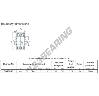 Il Cuscinetti A Sfera, noto come 7408-BDB-JTEKT JTEKT, ha un diametro interno di 40 mm, un diametro esterno di 110 mm e uno spessore di 54 mm.