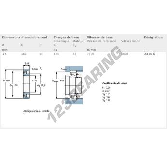 Il Cuscinetti Orientabili A Sfere, noto come 2315-K-SKF SKF, ha un diametro interno di 75 mm, un diametro esterno di 160 mm e uno spessore di 55 mm.