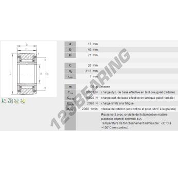 Il Rotella A Sfere, noto come NATR17-PP-INA INA, ha un diametro interno di 17 mm, un diametro esterno di 40 mm e uno spessore di 21 mm.