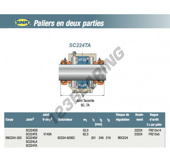 Il Accessorio Di Supporto noto come SC224TA-SNR SNR misura mm in diametro interno, mm in diametro esterno e mm in spessore. È prodotto in .
