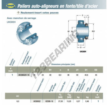 Il Accessorio Di Supporto noto come UK306-G2-H2306-16-SNR SNR misura 25.4 mm in diametro interno, 72 mm in diametro esterno e 24 mm in spessore. È prodotto in .
