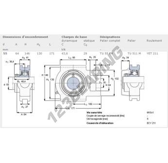 Il Supporto In Ghisa - 1 Fissaggio noto come TU55-FM-SKF SKF ha un diametro interno di 55 mm. Questo riferimento è fatto da ghisa e il tipo di fissaggio è .