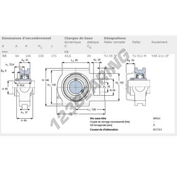 Il Supporto In Ghisa - 1 Fissaggio noto come TU55-TF-SKF SKF ha un diametro interno di 55 mm. Questo riferimento è fatto da ghisa e il tipo di fissaggio è .