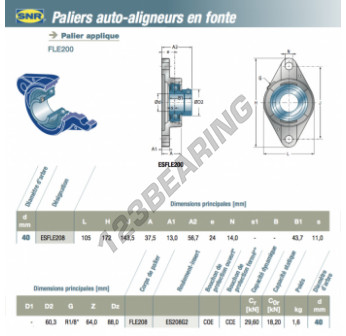 Il Supporto In Ghisa - 2 Fissaggi noto come ESFLE208-SNR SNR ha un diametro dell'albero di 40 mm e un interasse di 172 mm. Questo numero di parte è prodotto in ghisa e il tipo di serraggio è .